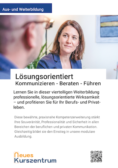Das Neue Kurszentrum organisiert und leitet praxisorientierte Ausbildungen und Weiterbildungen in lösungsorientierter Beratung, Coaching, Therapie und Führung.